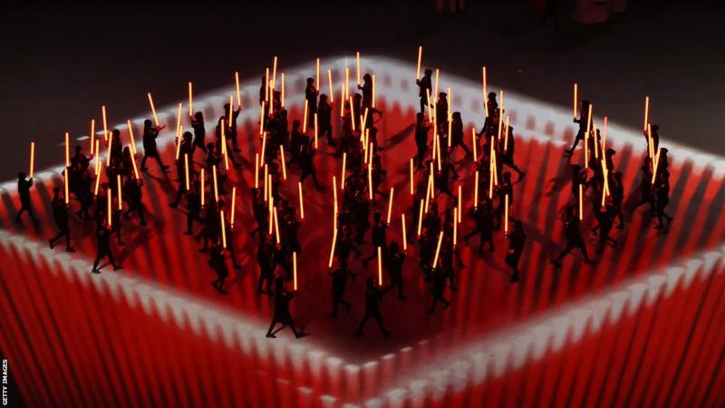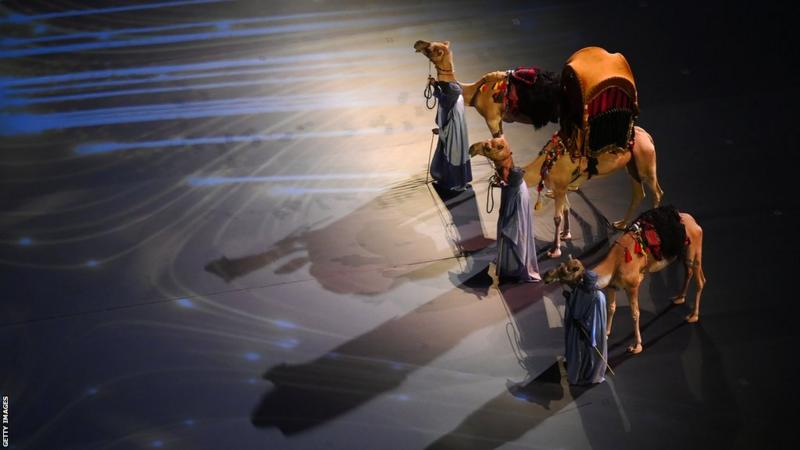 The 30-minute ceremony ended with a fireworks display and another dance routine before the Qatar and Ecuador teams took to the pitch to start their warm-ups.
