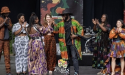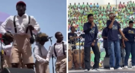 • Diana Hamilton feeds over 450 school children at Bukom Park