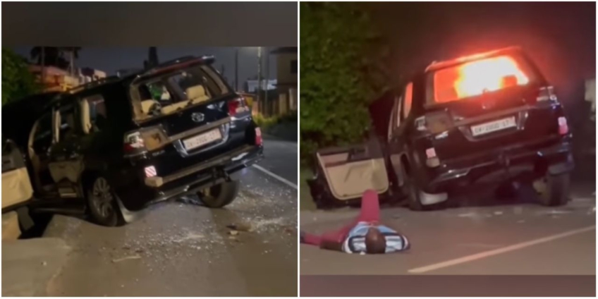 The vehicle was burning and one person could be heard saying, “the person is not dead and I need an ambulance.”