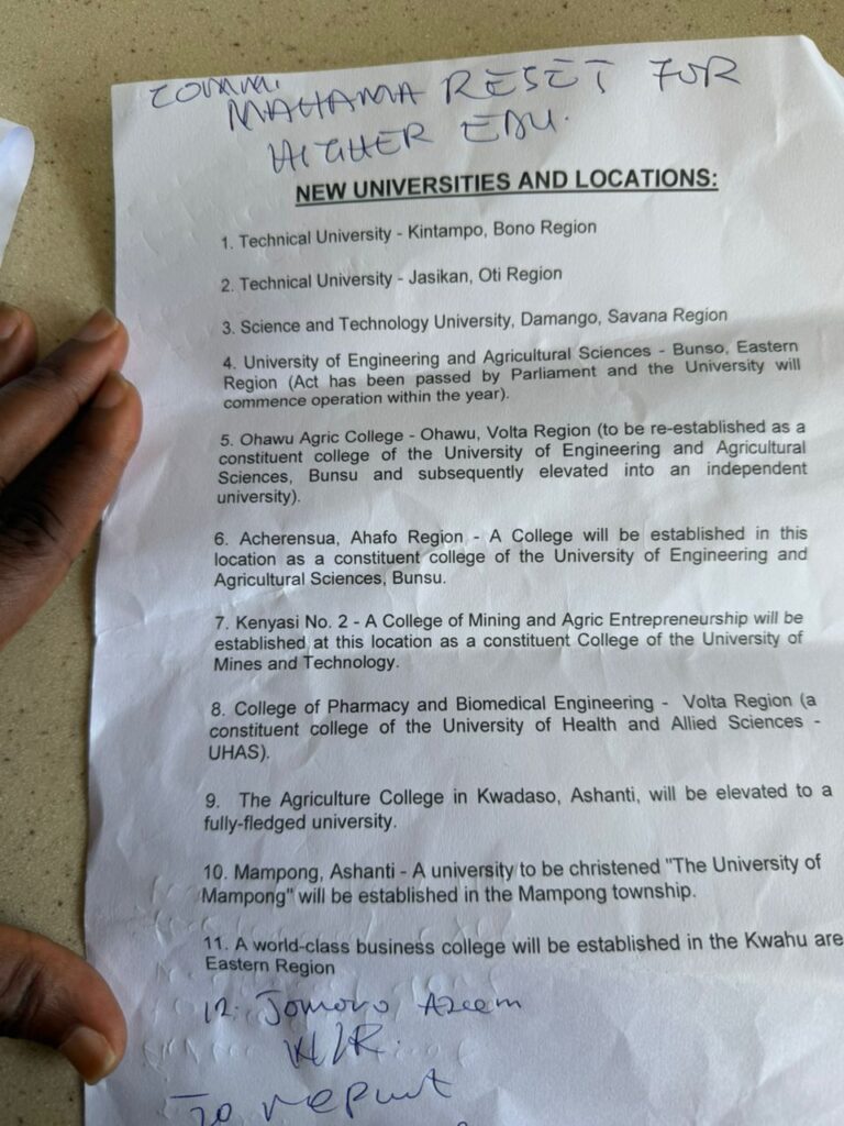 • A College of Mining and Agricultural Entrepreneurship at Kenyasi No. 2, to operate under the University of Mines and Technology