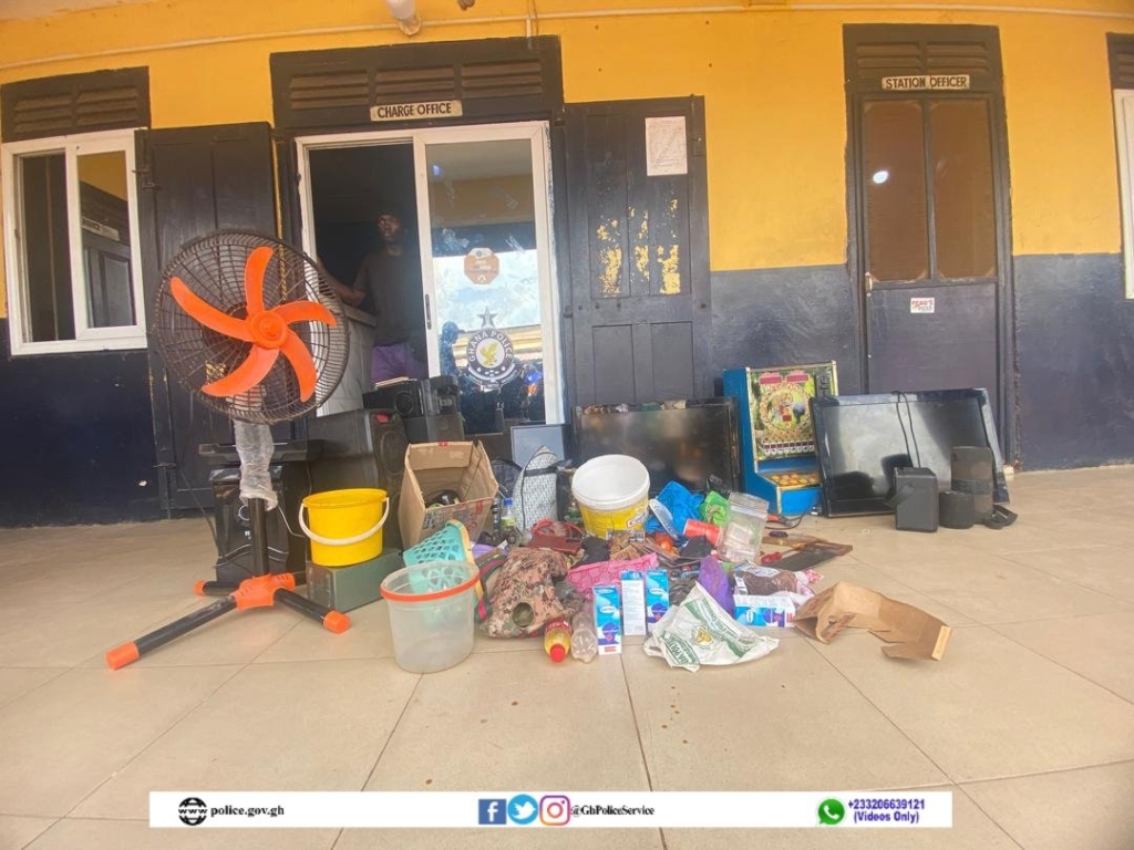 Items retrieved from the location included dried leaves suspected to be Indian hemp, locally distilled gin known as 'akpeteshie' (locally called laka), a 32-inch television set, and assorted brands of cigarettes.