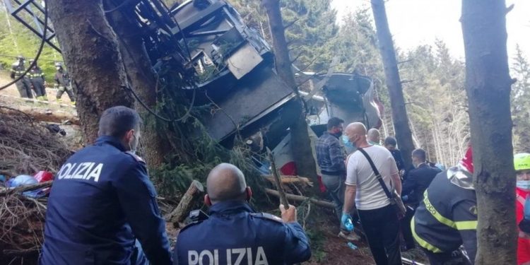 The accident happened on a service transporting passengers from the resort town of Stresa up the nearby Mottarone mountain in the region of Piedmont.
