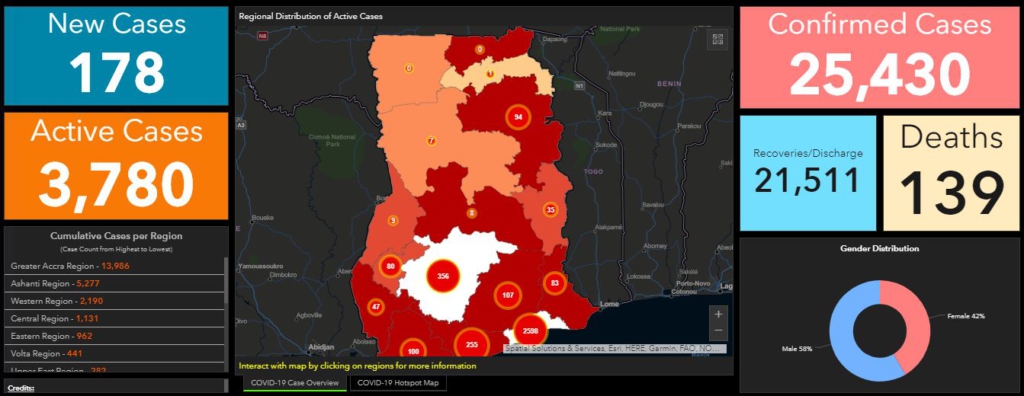 This brings the country's total case count to 25,430 according to the Ghana Health Service (GHS).