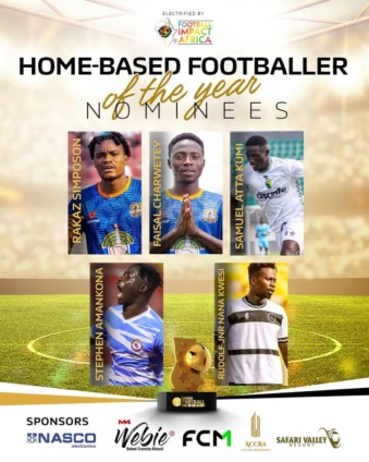 Simpson is joined on the five-man shortlist by his club teammate, winger Faisal Charwetey, and Berekum Chelsea forward Stephen Amankona, who currently tops the Ghana Premier League scoring charts with 15 goals. Also nominated are Samuel Atta Kumi of Bibiani GoldStars and Rudolf Jnr Nana Kwesi of Swedru All Blacks.