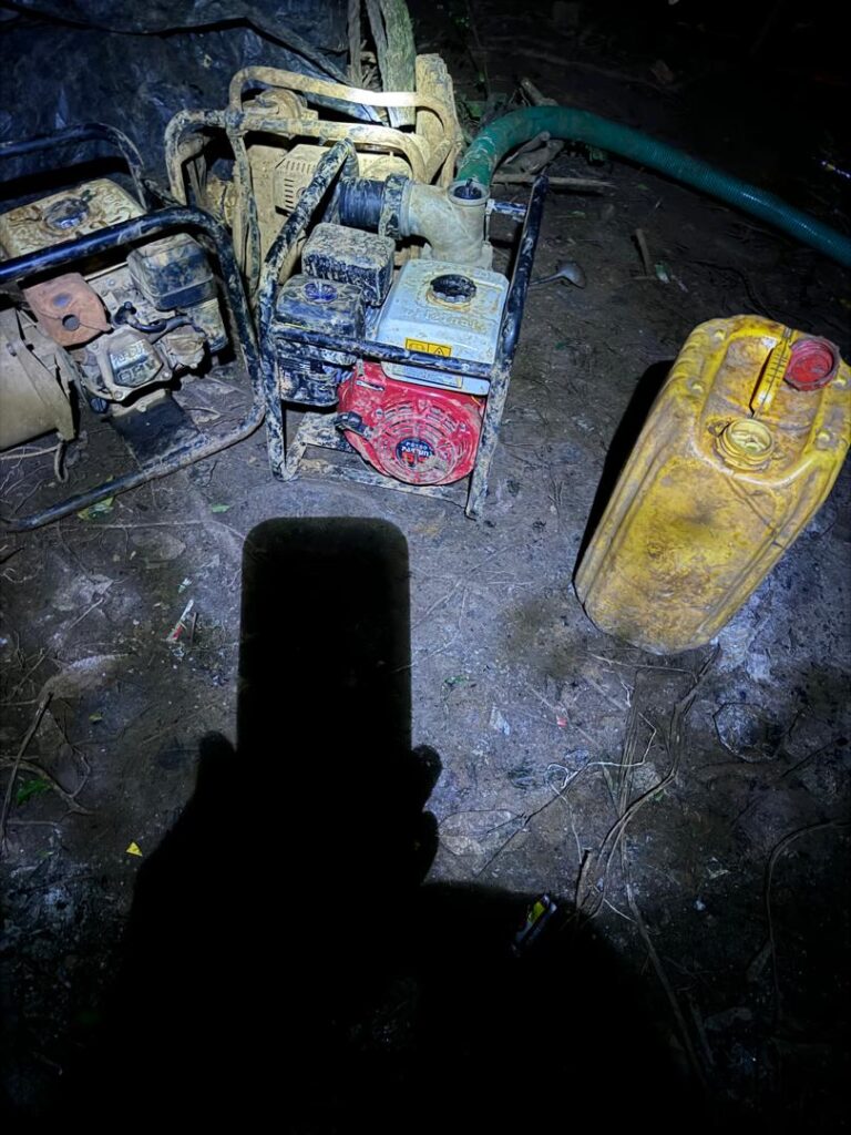 Security personnel also destroyed equipment believed to have been used for illegal mining activities. Sixteen water pumping machines were burnt, while 52 makeshift poly-sheet tent structures were also set ablaze.