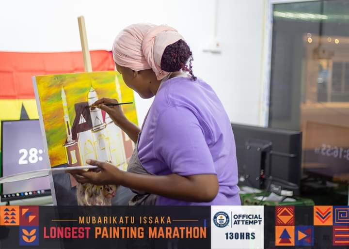 Mubarikatu Issaka, a resident of Akwatia in the Eastern region is attempting to break the longest individual painting marathon at the Xtreme pub in Akwatia.