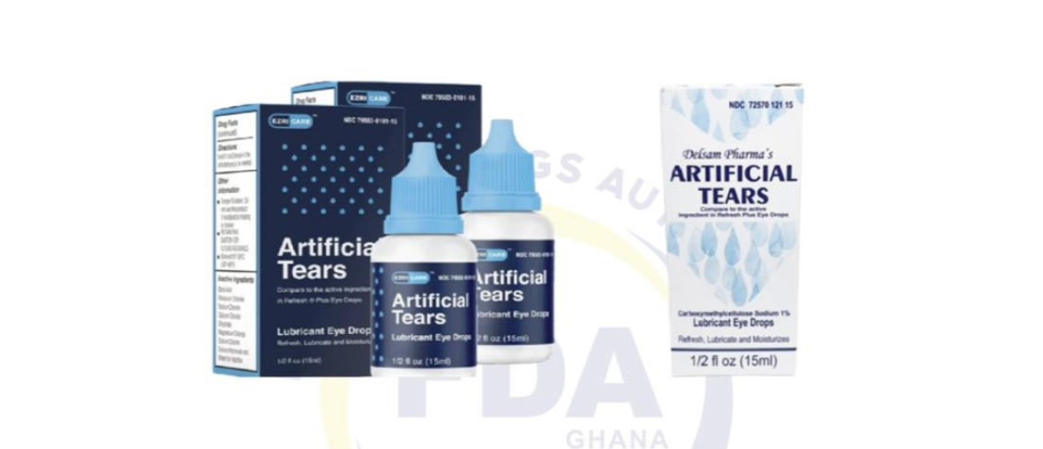 The Food and Drugs Authority (FDA) has cautioned the populace against the usage of two brands of eyedrops, Ezricare Artificial tears and Delsam Pharma’s Artificial tears.