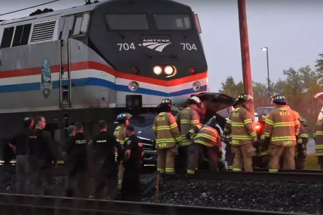 Amtrak told CBS News and CNN in a statement that the car was sitting on the tracks at the time of the crash.