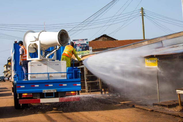 The exercise which begun early Monday morning at Wenchi in the Bono Region saw all the markets, shops and other public places disinfected. Amponsakrom, Subinso, Boku and other nearby towns also had their markets disinfected by the Zoomlion sanitation officers with support from the Ministry of Local Government and Rural Development.