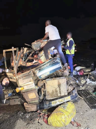 Graphic online reports that on reaching a section of the road, in front of the Peki College of Education (GOVCO), the truck collided head-on with the Benz bus.