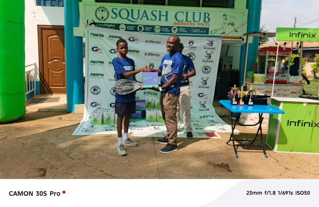 This year’s Patron’s Day Junior National tournament was sponsored by Infinix Phones, Abofra World School in Kumasi, GeoPlas Ghana, Essence Work Ready, Vytal Digital and the Grange Squash Club of Scotland.