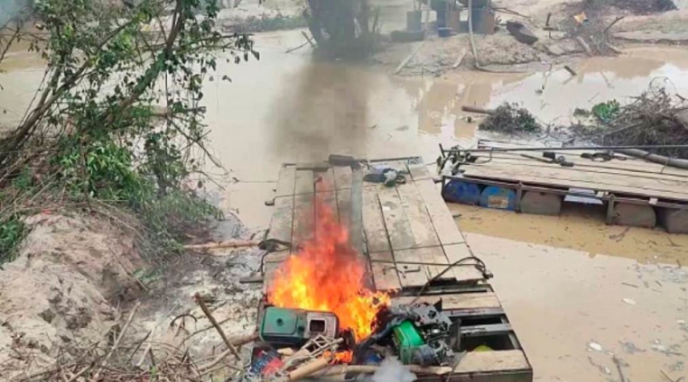 A large number of illegal mining operators, on seeing the task force, fled, leaving their mining equipment behind.
