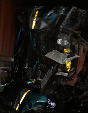 The truck and the Toyota vehicle involved in the accident have been left in a deplorable state.