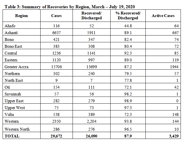 The country's case count now stands at 29,672 with 26,090 recoveries/discharges, according to the Ghana Health Service (GHS).