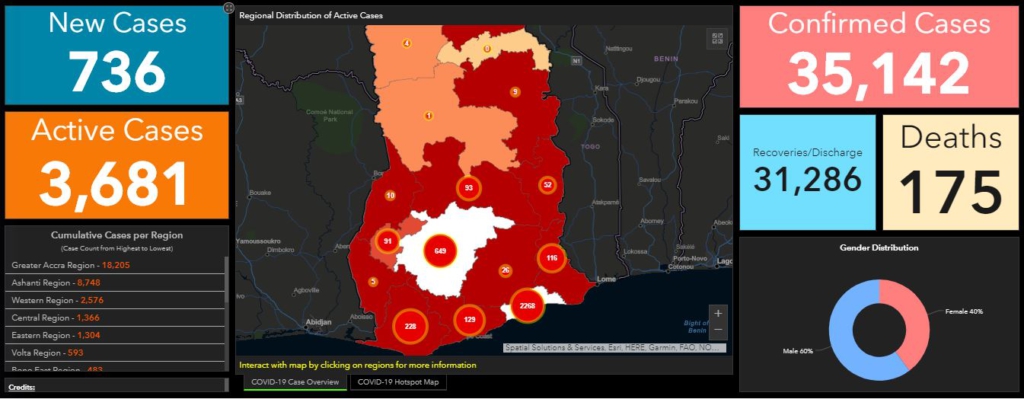 Seven more Ghanaians have lost their lives to Covid-19 while 736 more have tested positive for the virus.