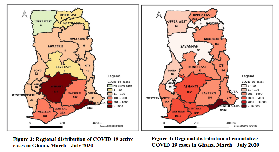 Greater Accra Region - 12,560; Ashanti Region - 4,824; Western Region - 2,045; Central Region - 1,064; Eastern Region - 855; Volta Region - 370; Upper East Region - 278; Northern Region - 163; Western North Region - 158; Bono East Region - 142; Oti Region - 114; Bono Region - 96; Upper West Region - 58; Savannah Region - 50; Ahafo Region - 36; North East Region - 9.