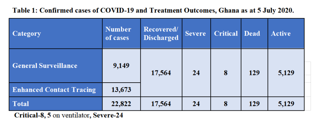 The GHS website indicates that the country currently has 5,129 active cases of the novel coronavirus.
