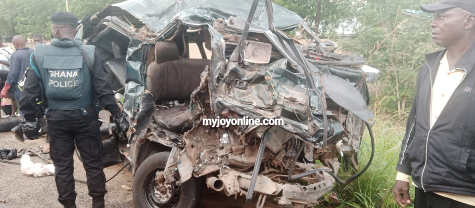 A Hyundai mini bus with registration number GB 4644-20 from Juapong to Tema collided head-on with an articulated truck with registration number GT 6473-21 killing six instantly.