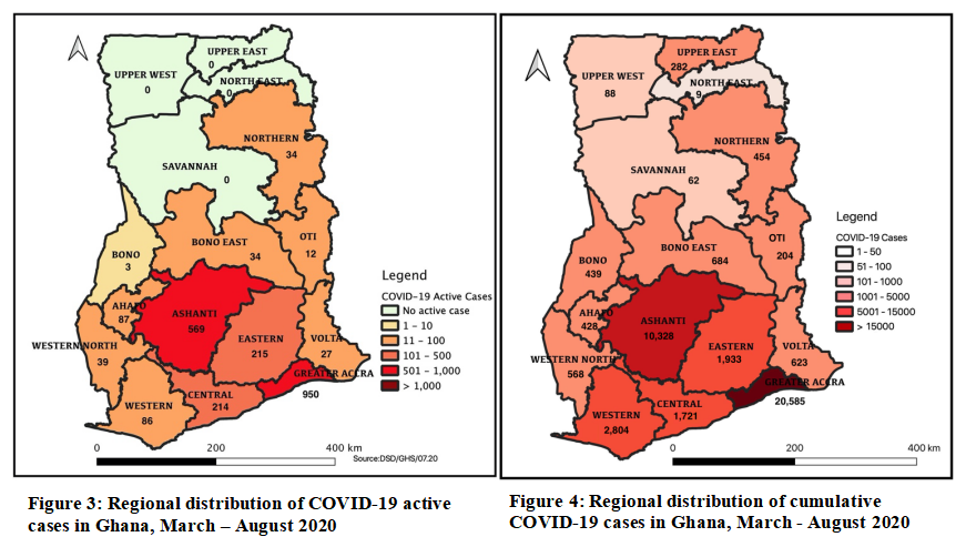 Greater Accra Region - 20,585; Ashanti Region - 10,328; Western Region - 2,804; Eastern Region - 1,933; Central Region - 1,721; Bono East Region - 684; Volta Region - 623; Western North Region - 568; Northern Region - 454; Bono Region - 439; Ahafo Region - 428; Upper East Region - 282; Oti Region - 204; Upper West Region - 88; Savannah Region - 62; North East Region - 9