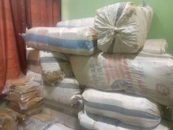 According to the statement, the team during the search discovered rooms stocked with sacks of bags containing compressed substances suspected to be marijuana.