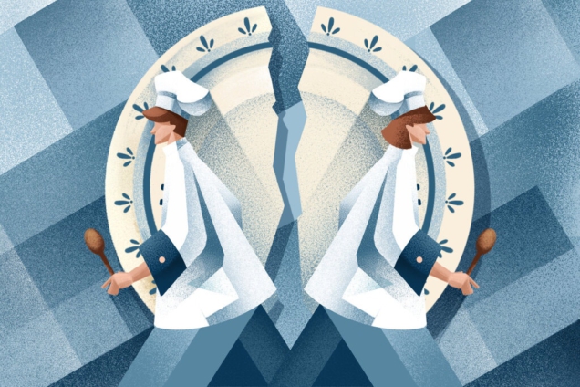 They saw several therapists, but their shared focus had shifted: she was deeply involved in being a mother, he was driven to earn Michelin stars. In 2000, they decided to divorce, but continue to work together.