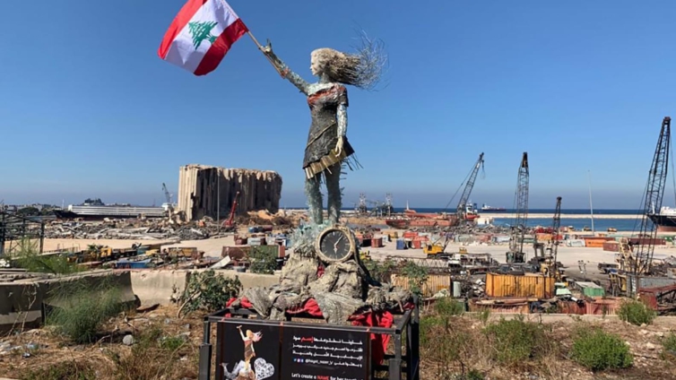 When Nazer finally had enough items, she put them together -- creating a woman raising Lebanon's flag, her hair and dress flowing in the wind. The sculpture, which still doesn't have a name, even features a damaged clock stuck at 6:08, the moment of the explosion.