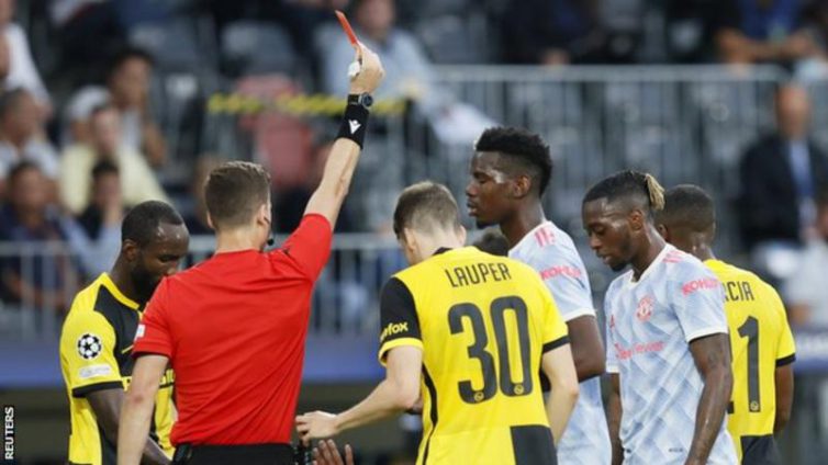 Aaron Wan-Bissaka has been given a two-match ban by Uefa for his sending off during Manchester United's Champions League defeat to Young Boys.
