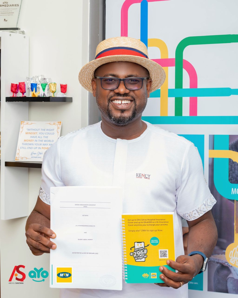 Mr. Gilbert Abeiku Aggrey popularly known as 'Abeiku Santana' has been unveiled as brand ambassador for 'aYo' Intermediaries Ghana, a micro insurance company of telecommunication giants, MTN.