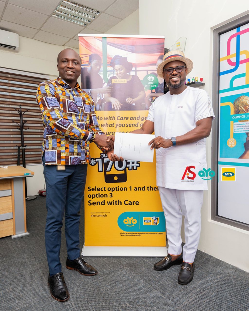 At the official signing ceremony in Accra, Mr. Francis Gota, Chief Executive Officer of aYo Ghana Intermediaries Limited, stated that Abeiku Santana's advocacy of championing the course of the less privileged aligns with the company's vision.
