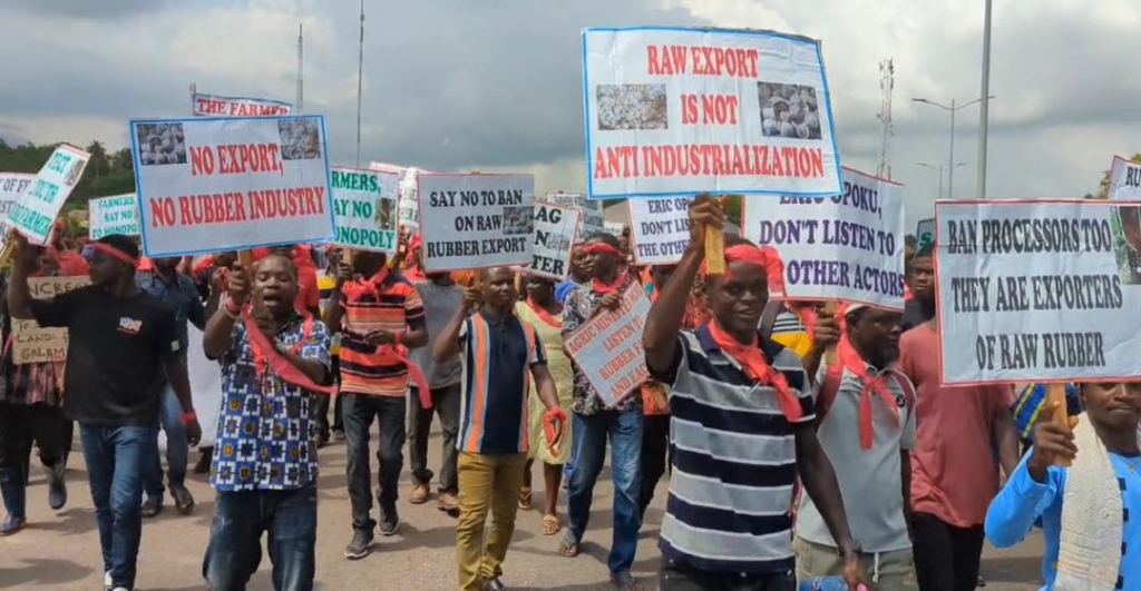 According to the farmers, exports of raw rubber operate under an existing government-approved regulatory framework supervised by the Tree Crops Development Authority (TCDA).