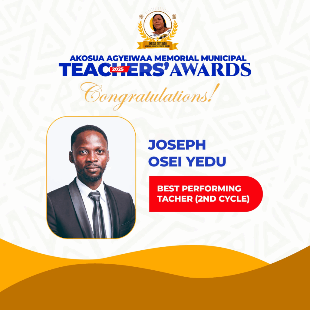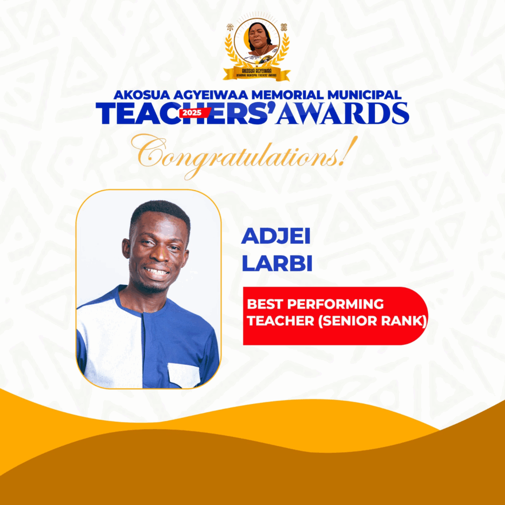 For Prince Kojo Frimpong, crowned Overall Best Teacher for 2025, the recognition marked a defining moment in a teaching career spanning more than two decades.