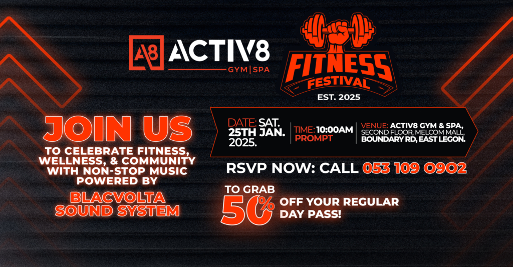 With locations in East Legon and Spintex, ACTIV8 Gym and Spa offers state-of-the-art facilities, fitness classes, personal training, and spa services, creating a holistic wellness hub for its members. The festival is set to embody this mission by providing an inclusive space for fitness enthusiasts to connect, learn, and thrive.