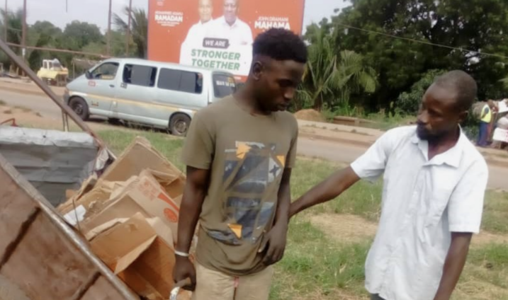 According to a source, the dealer ignored the police officers around and went straight to cut some electrical cables from some streetlights around the Adentan Divisional Command.