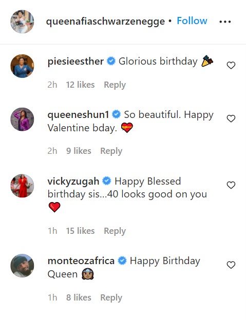 As she clocked 40 on Monday, February 14, friends and family of TV personality Afia Schwarzenegger gathered around to celebrate her.