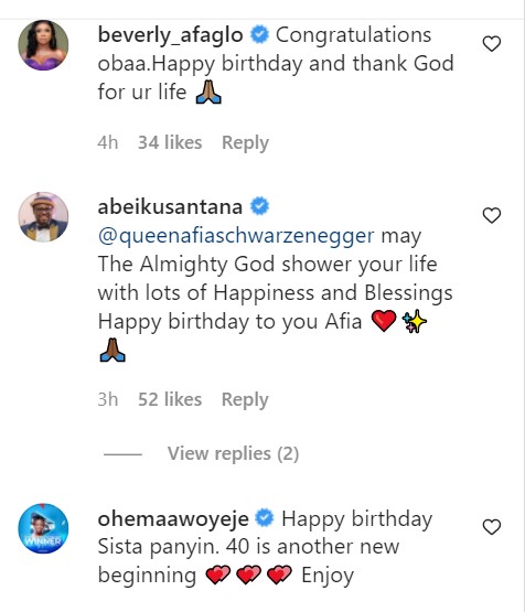 Many of Afia Schwarzenegger's colleague actors, musicians and fans also wished her a happy birthday underneath the post.