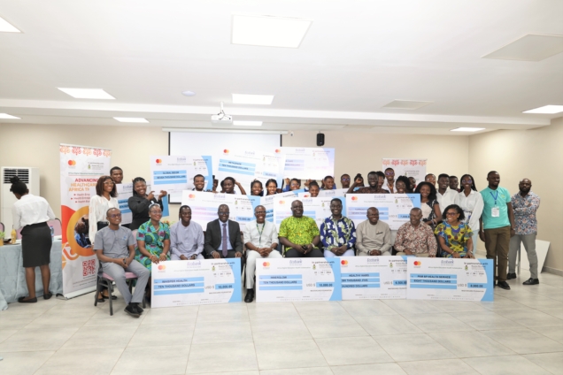 Sixteen health business start-ups have received $150,000 cheque from the Mastercard Foundation Africa Higher Education Health Collaborative at the Kwame Nkrumah University of Science and Technology.