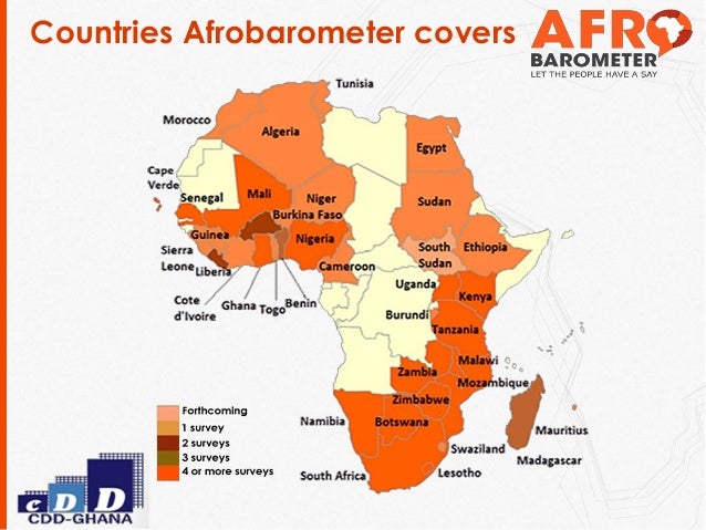 Afrobarometer, a pan-African, non-partisan research network, conducts a series of national public-attitude surveys with the objective of informing the public discourse on democracy, governance, and other policy and development issues.