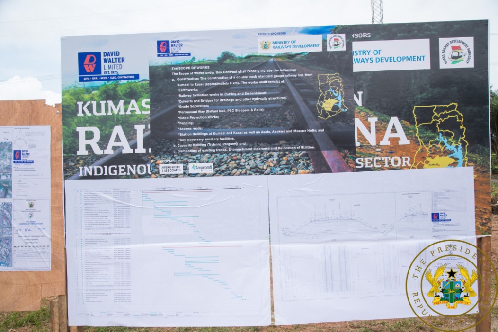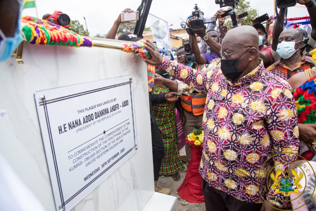President Nana Akufo-Addo, has cut the sod for work to commence on the 83.5-kilometre standard gauge railway line from Kumasi to Obuasi, as part of the new Western Line being constructed.