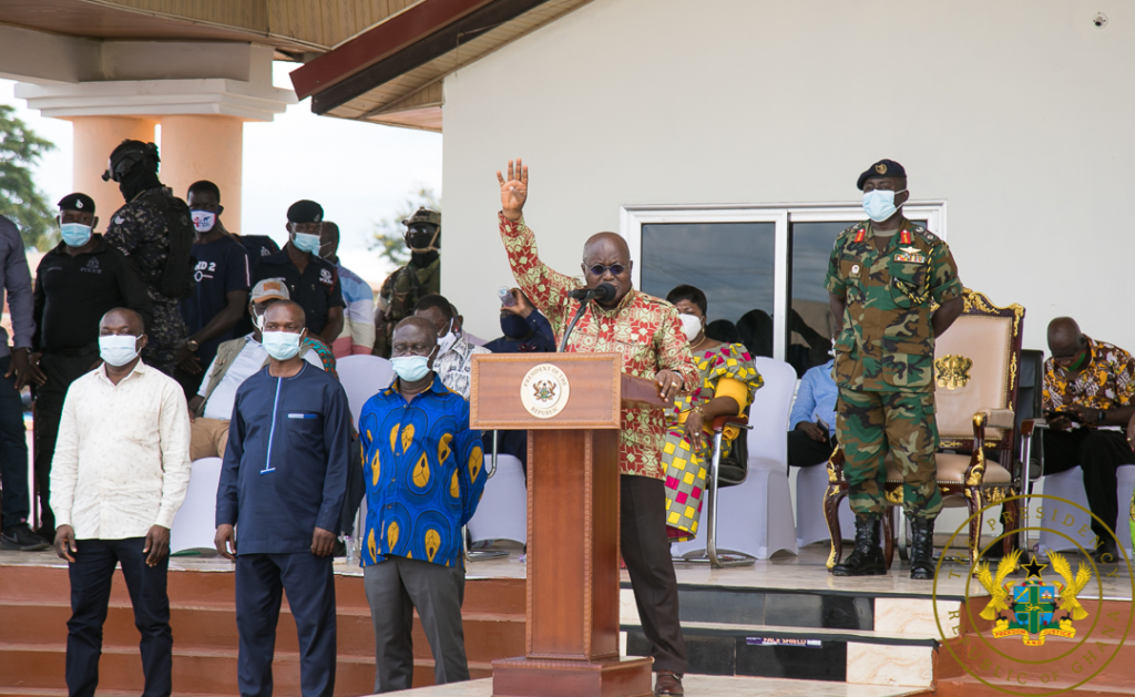President Nana Akufo-Addo has cut sod for the commencement of construction of the Wenchi Water Supply Project, at a ceremony at the Jubilee Park in Wenchi.