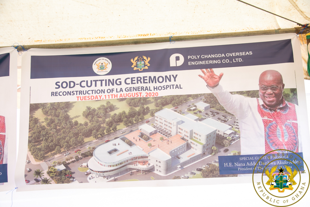 President Akufo-Addo has cut the sod for the commencement of construction of the La General Hospital Redevelopment Project.