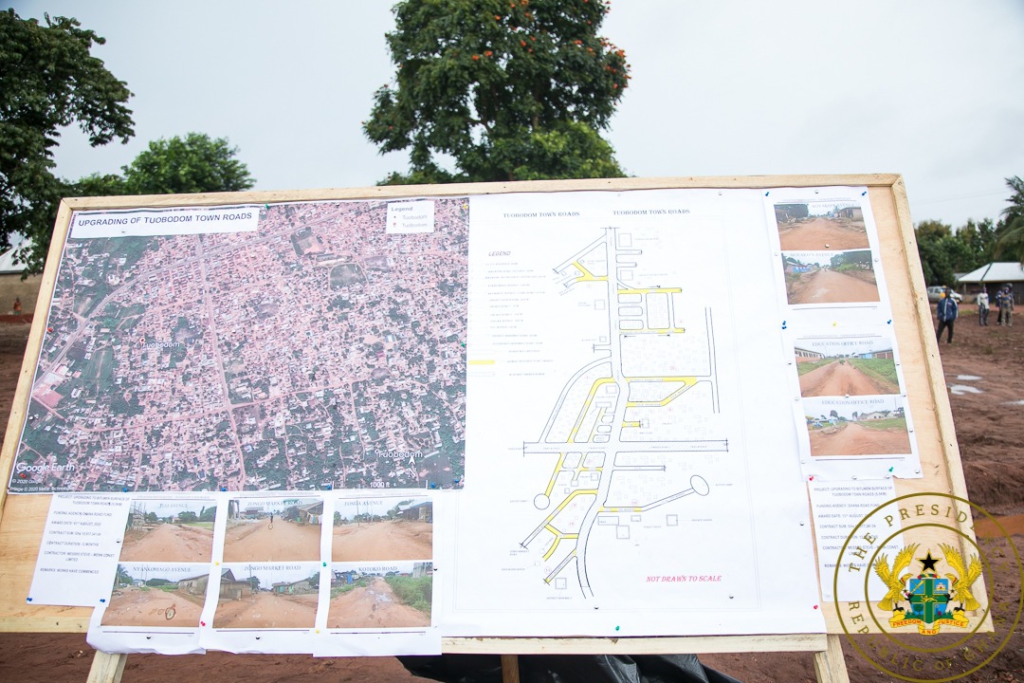 President Nana Akufo-Addo has cut the sod for the commencement of construction of the town roads in Tuobodom in the Techiman North constituency of the Bono East Region.