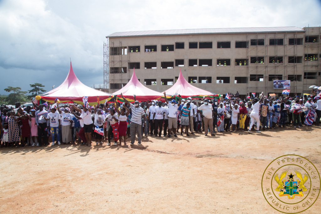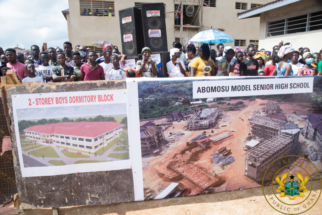 The Abomoso Model Senior High School is fitted with the full complement of amenities such as playing fields, administrative buildings, libraries, and dormitories. Additionally, the V-Block in the school has a total of 24 classrooms, as opposed to 12 classrooms in the E-Blocks constructed by the former administration.