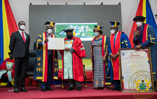The President of the country, Nana Akufo-Addo has received an honorary Doctor of Philosophy in Educational Leadership degree from the University of Cape Coast (UCC).