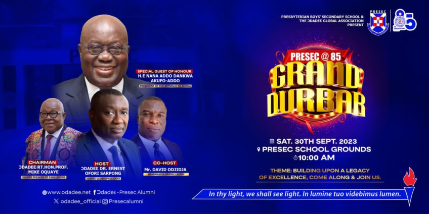The highlight of the anniversary, to be held at the Presec school grounds, will be the grand durbar which will feature a display of the school’s history, culture and traditions. It is set to begin at 10 a.m. and will be hosted by Ɔdadeɛ Global President, Ernest Ofori Sarpong.
