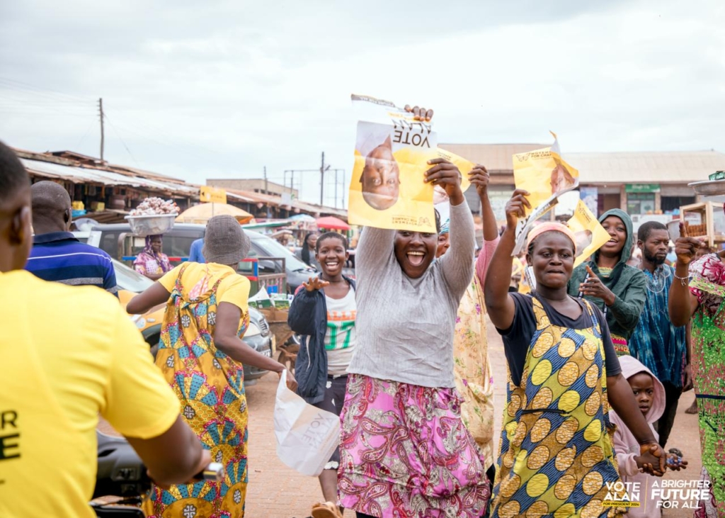 On his latest campaign trail, Presidential candidate for the Movement for Change/Alliance for Revolutionary Change Alan Kyerematen, made a stop in Sunyani to engage with the vibrant market women and the broader community.