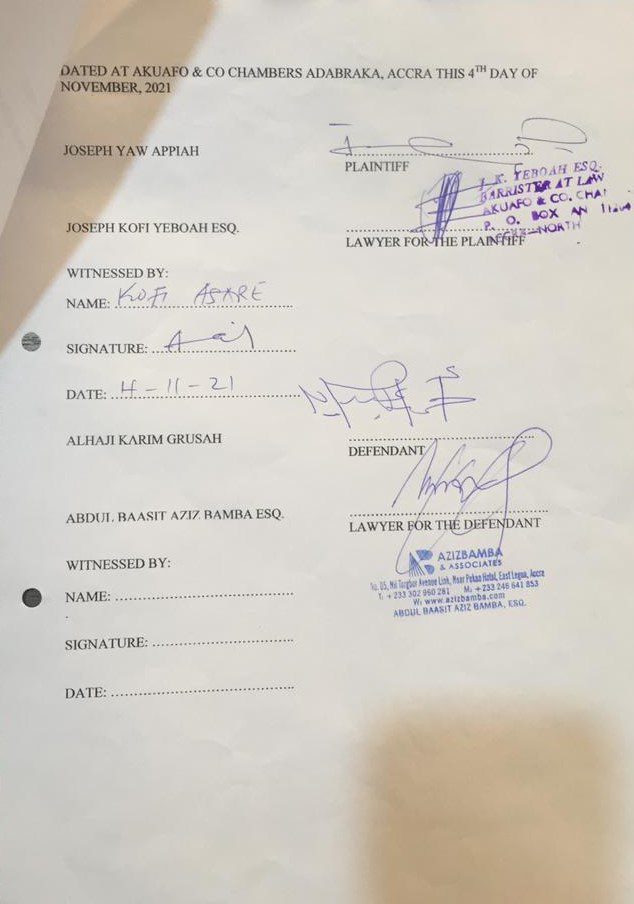 Mr. Appiah, a former Chairman of the Ghana League Clubs Association, told the court the false claims had damaged his reputation and business, and therefore sought 2.5 million cedis in compensation, public apology and retraction.
