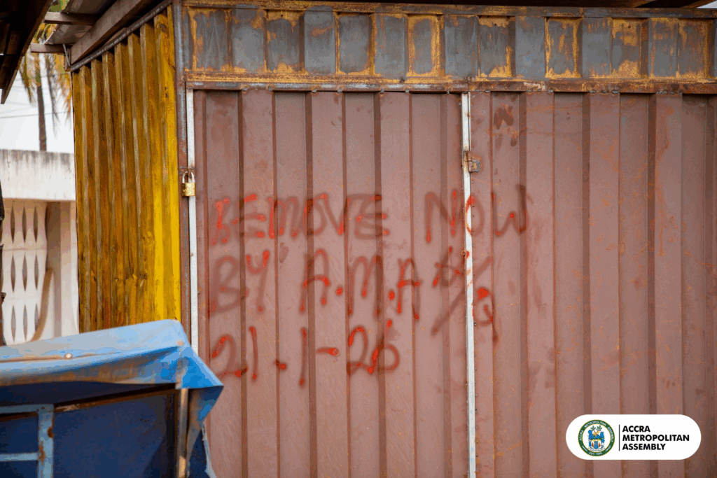 The Accra Metropolitan Assembly (AMA) has begun the removal of unauthorised structures along the shoulders of major streets and on government-reserved lands across the metropolis.