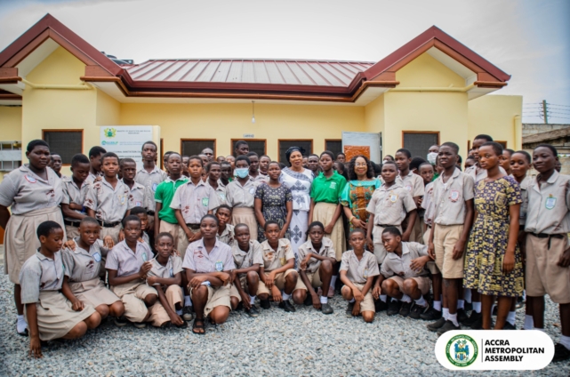 The Chief Executive of the Accra Metropolitan Assembly (AMA), Elizabeth Sackey, has commissioned a newly completed institutional toilet facility at Ayalolo 3 Basic and Mamprobi Sempe cluster of schools to enhance sanitation and hygiene within the metropolis.