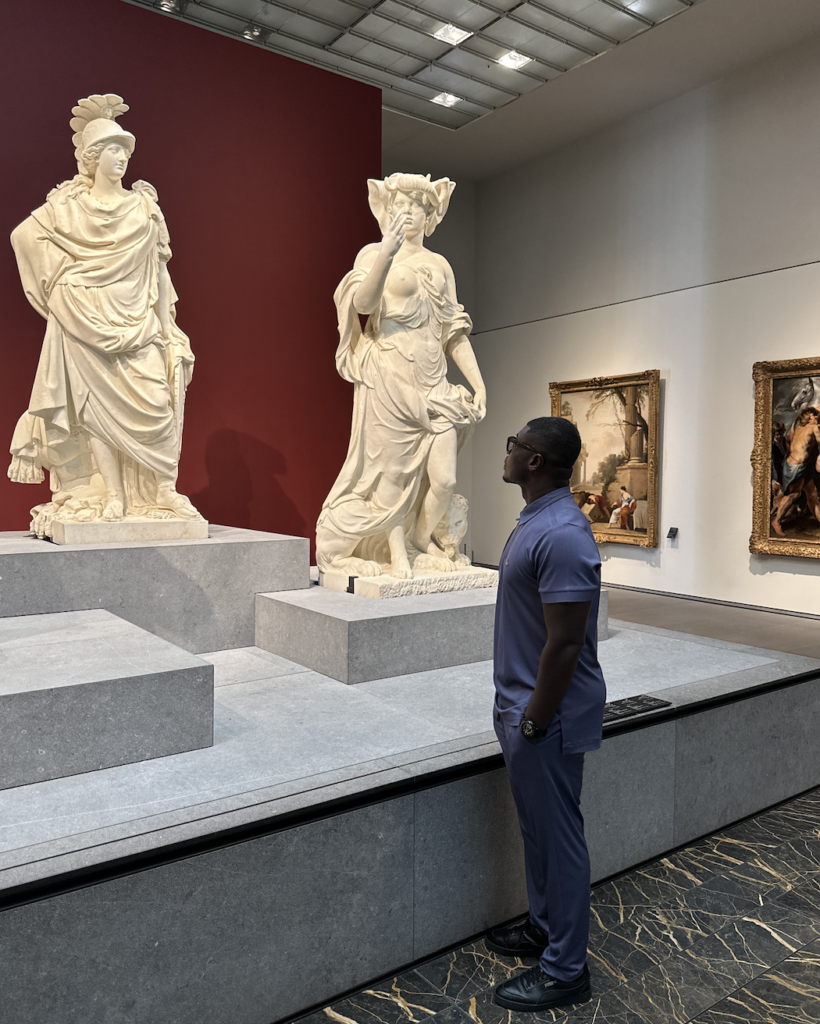 The Louvre Abu Dhabi is home to the statue of Ramessess II, a page of a blue Quran from North Africa (ca. 900), Virgin and Child (1480-85) by Giovanni Bellini and Study of the Figure of The Christ (ca 1648-1652) by Rembrandt van Rijn.