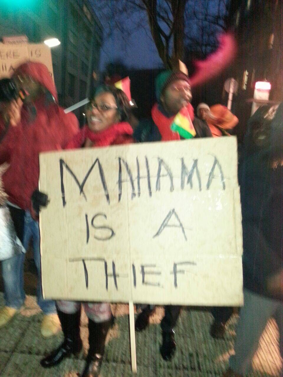 The prostestors, who were holding placards with inscriptions attacking the president’s leadership style, were demonstrating against what they described as the mismanagement of the country’s affairs by the Mahama administration .